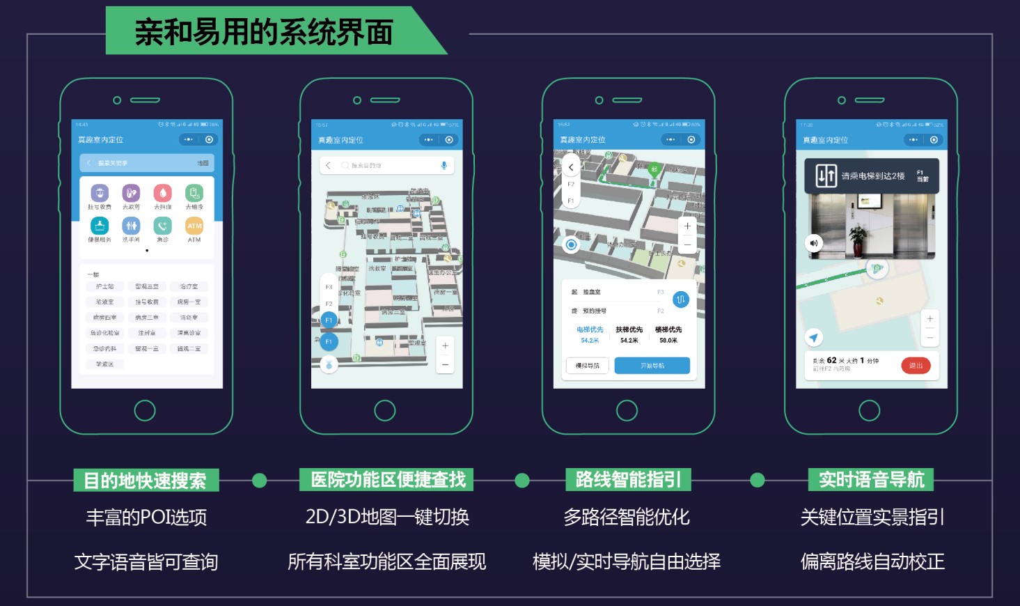 真趣科技“医院内部精准语音导航系统”已在多家大型医院中得到实地应用,通过“目的地搜索、路线规划、实时语音导航、反向寻车”等功能,可以让患者使用手机就可以快速找到目的地,无