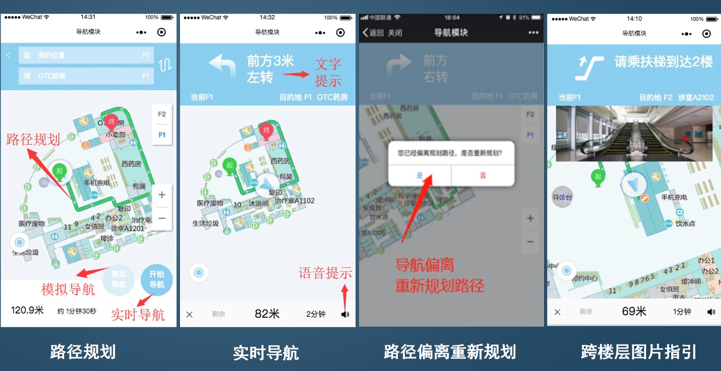 以往患者到了医院,总是要跟复杂的指示牌或者咨询台打交道,现在可以使用医院的微信公众号、小程序等多种形式进行路线指引,不需要下载软件APP,利用手机导航快速前往想去的科室或服务区,再也不怕多走冤枉路。